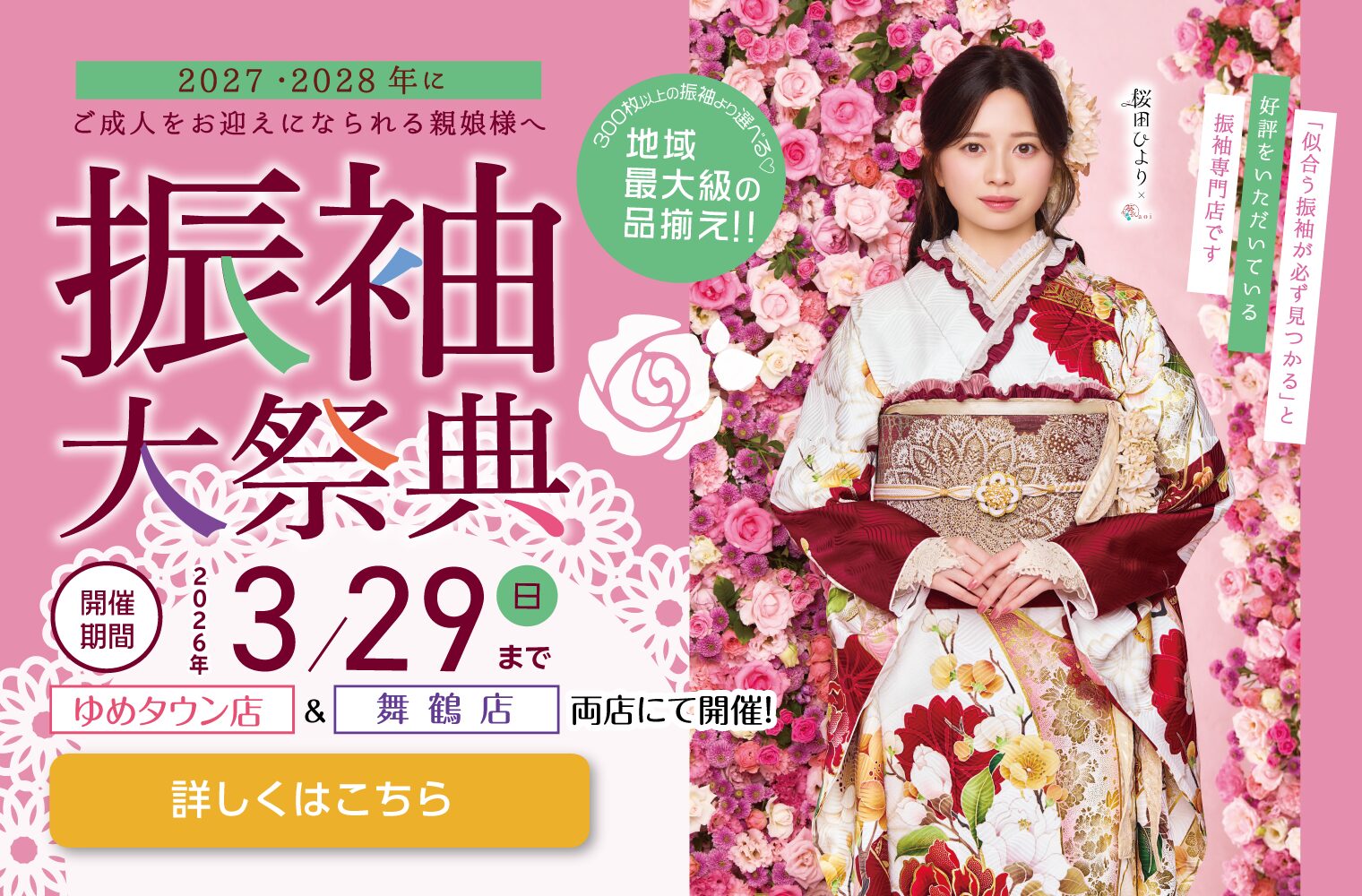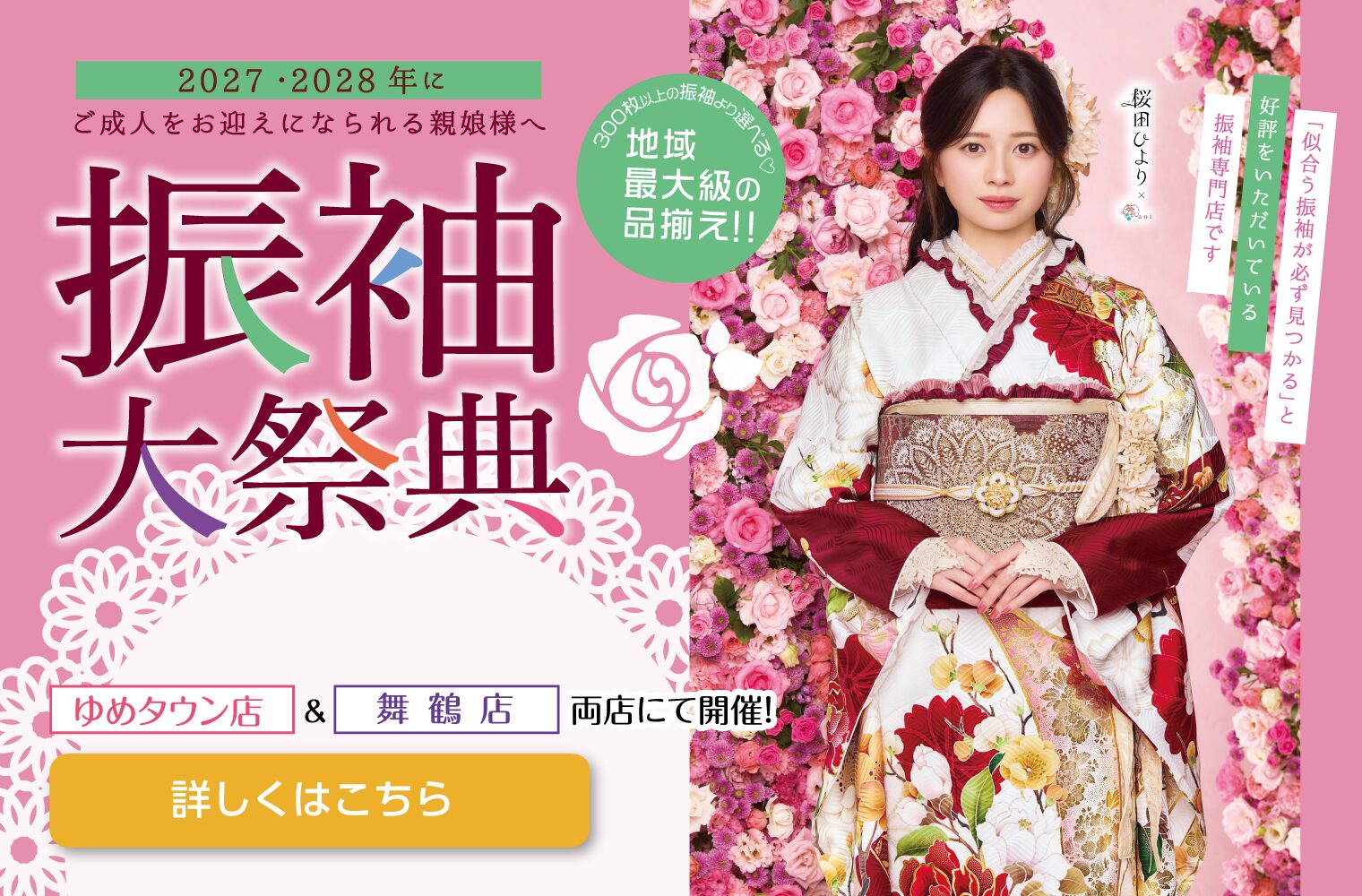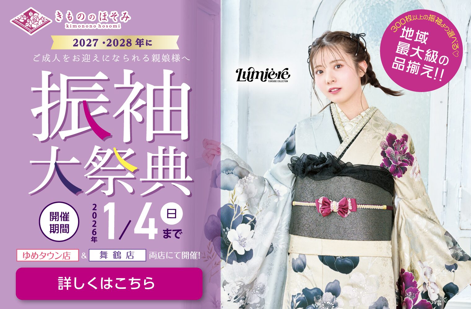 きもののほそみは、一生に一度の二十歳の記念日が、お嬢様とご家族様にとって最高の日になるようにお手伝いいたします。