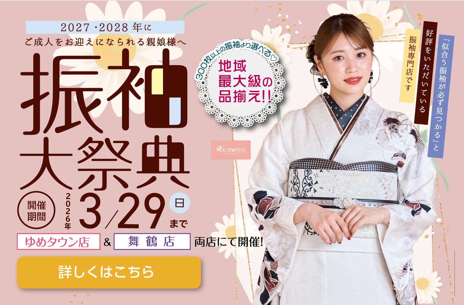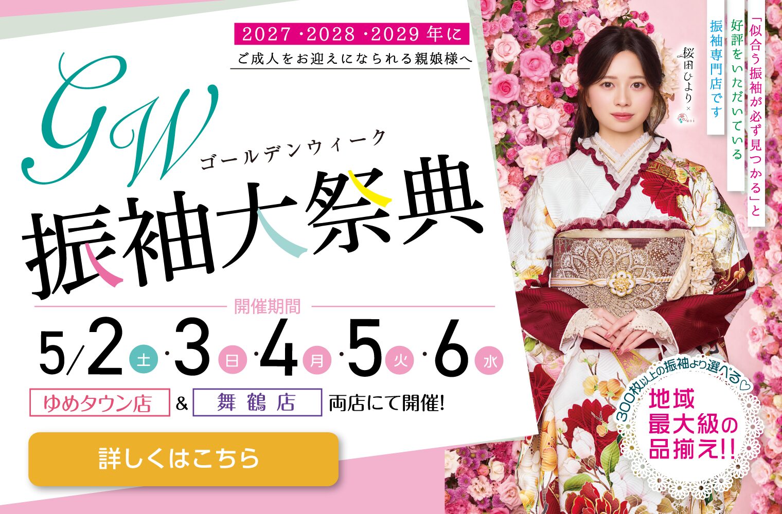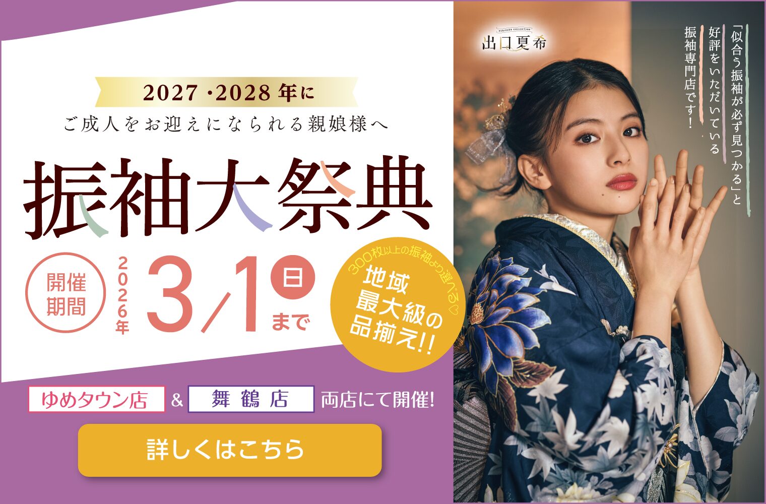 きもののほそみは、一生に一度の二十歳の記念日が、お嬢様とご家族様にとって最高の日になるようにお手伝いいたします。
