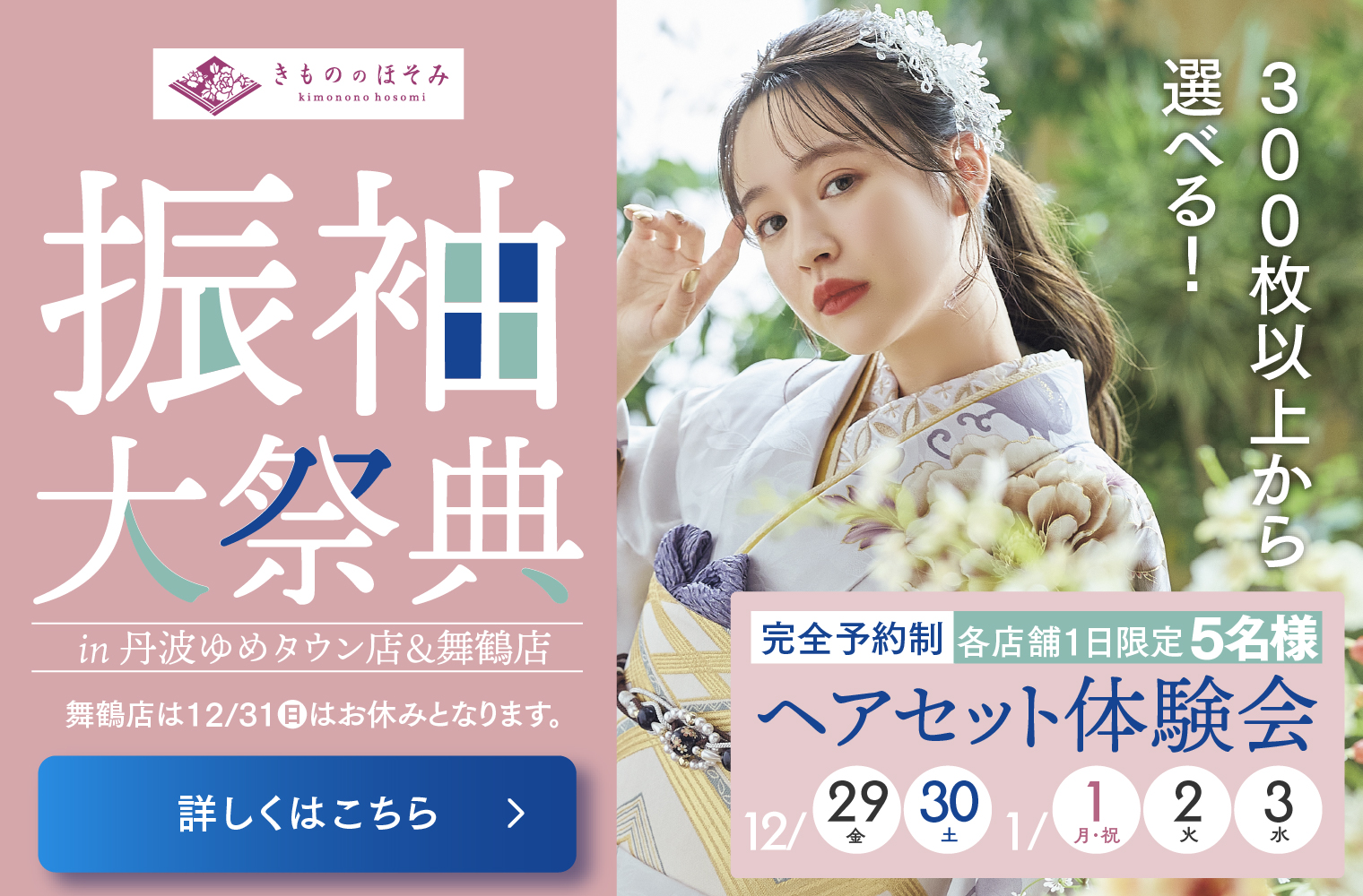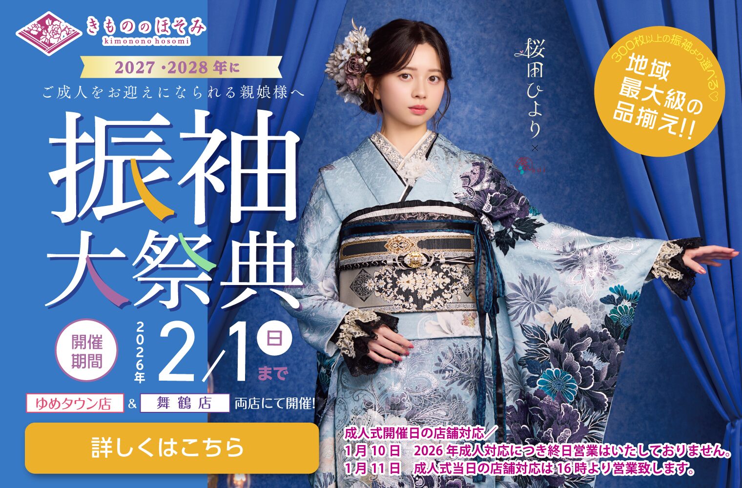 きもののほそみは、一生に一度の二十歳の記念日が、お嬢様とご家族様にとって最高の日になるようにお手伝いいたします。