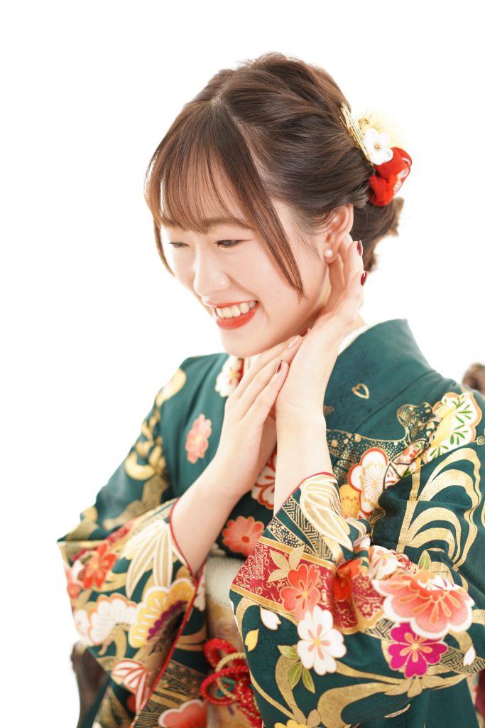 兵庫県丹波市、京都府舞鶴市に立地する「きもののほそみ」直営の写真館スタジオで、成人式の前撮り撮影をされたお客様のお写真です。 二十歳の晴れやかな喜びがあふれます。