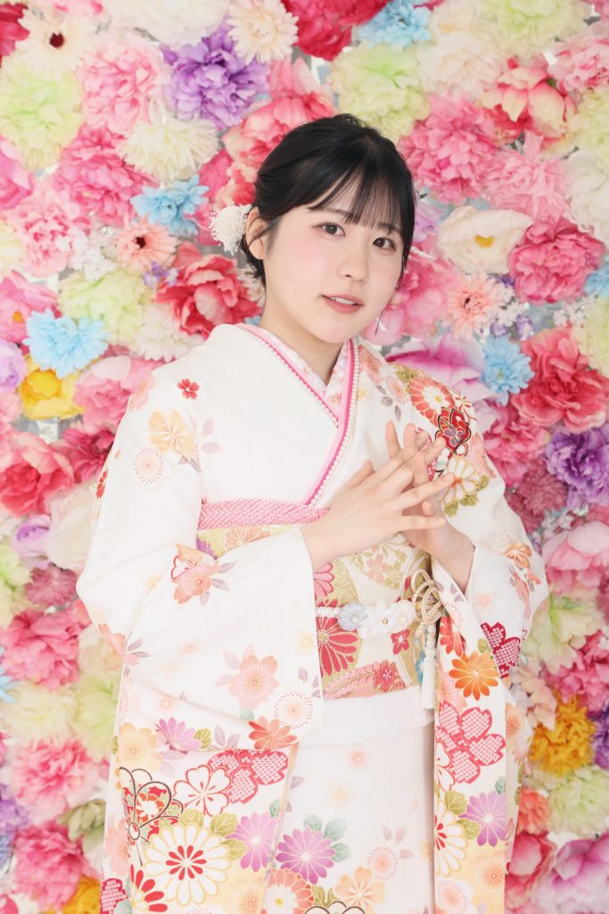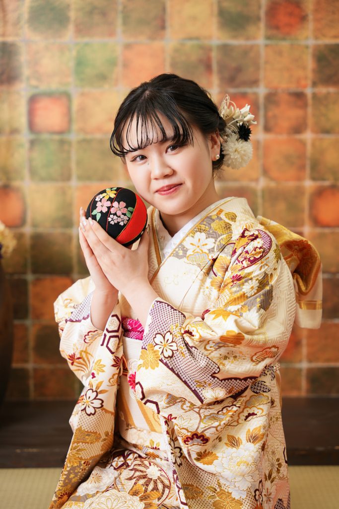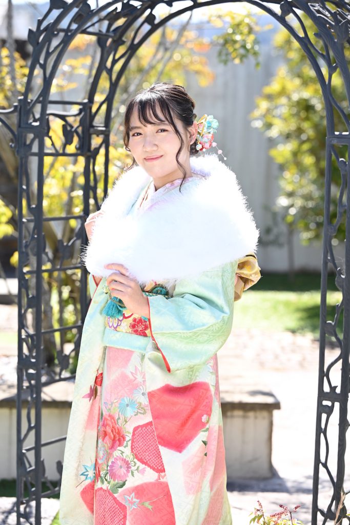 兵庫県丹波市、京都府舞鶴市に立地する「きもののほそみ」直営の写真館スタジオで、成人式の前撮り撮影をされたお客様のお写真です。 二十歳の晴れやかな喜びがあふれます。