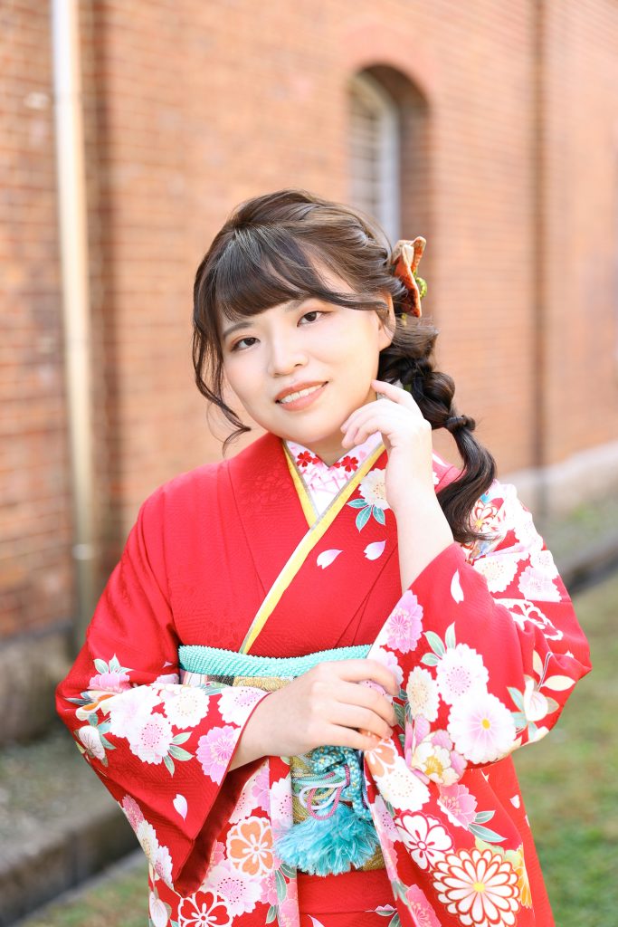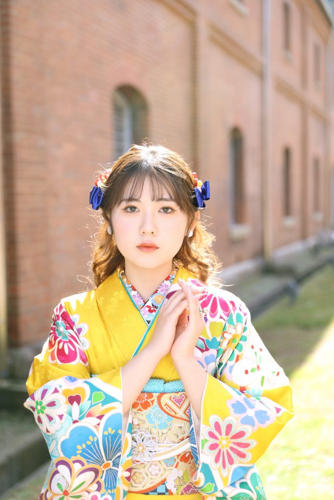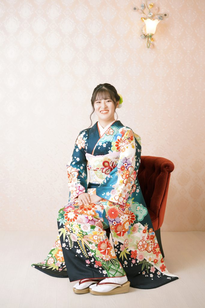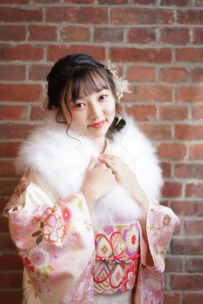 兵庫県丹波市、京都府舞鶴市に立地する「きもののほそみ」直営の写真館スタジオで、成人式の前撮り撮影をされたお客様のお写真です。 二十歳の晴れやかな喜びがあふれます。