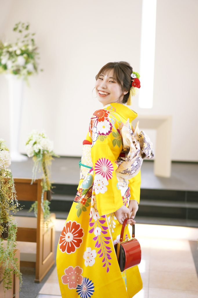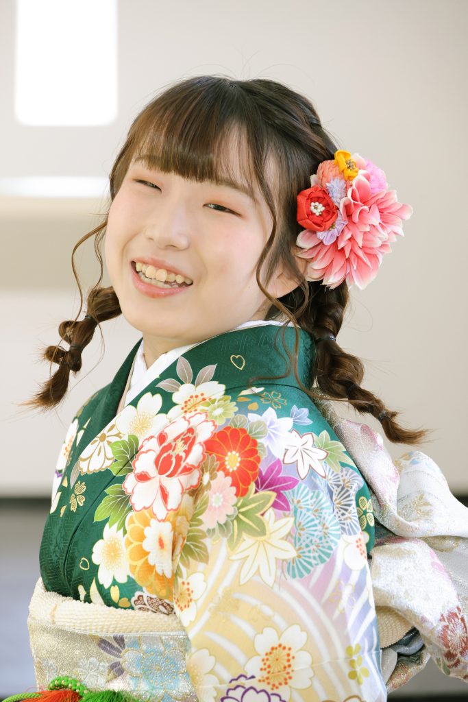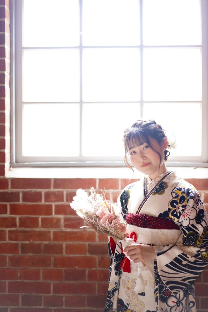 兵庫県丹波市、京都府舞鶴市に立地する「きもののほそみ」直営の写真館スタジオで、成人式の前撮り撮影をされたお客様のお写真です。 二十歳の晴れやかな喜びがあふれます。
