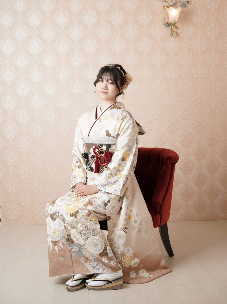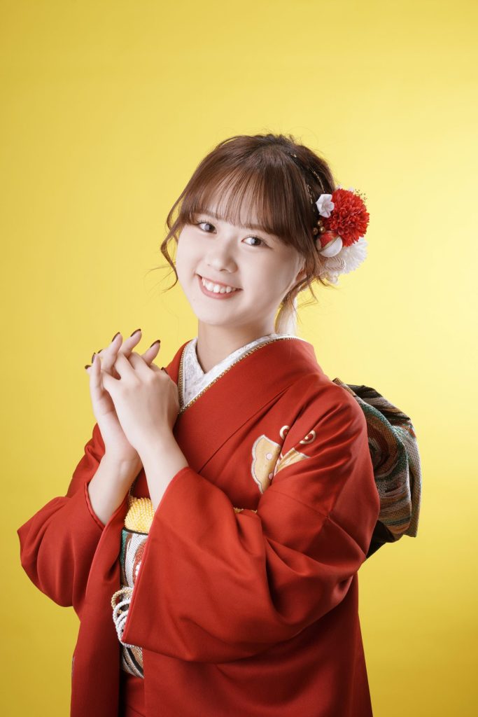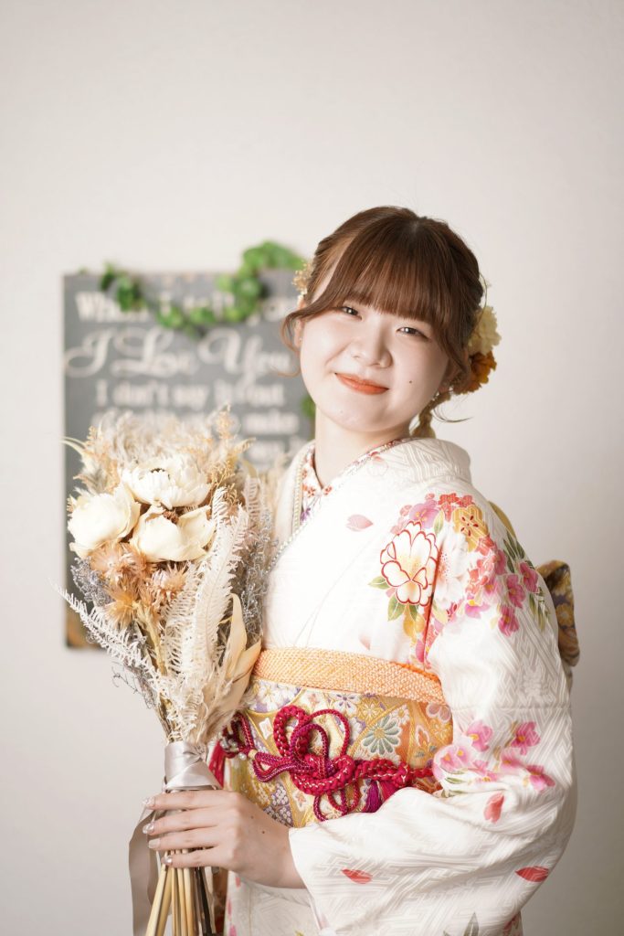 兵庫県丹波市、京都府舞鶴市に立地する「きもののほそみ」直営の写真館スタジオで、成人式の前撮り撮影をされたお客様のお写真です。 二十歳の晴れやかな喜びがあふれます。