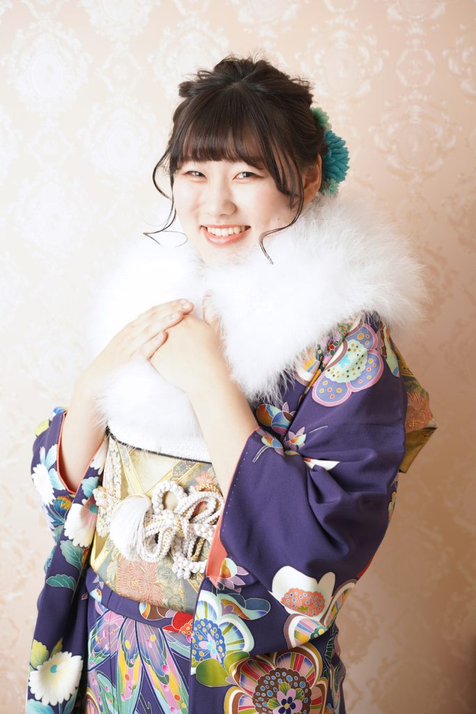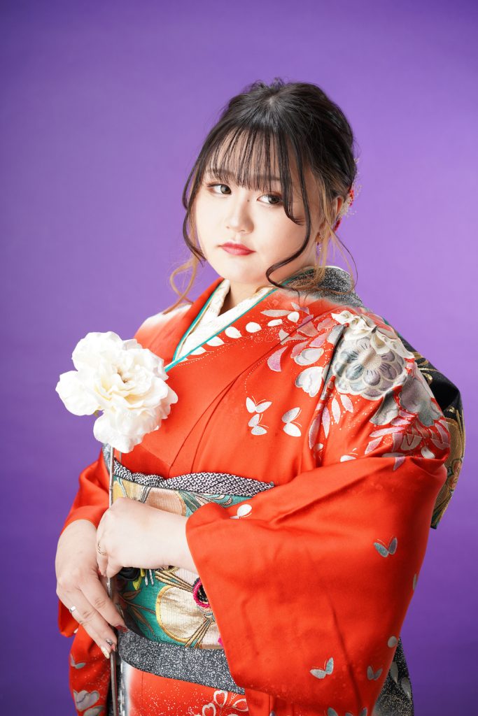兵庫県丹波市、京都府舞鶴市に立地する「きもののほそみ」直営の写真館スタジオで、成人式の前撮り撮影をされたお客様のお写真です。 二十歳の晴れやかな喜びがあふれます。
