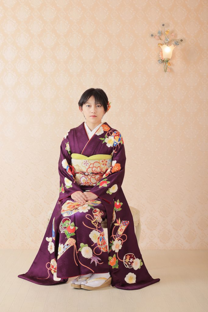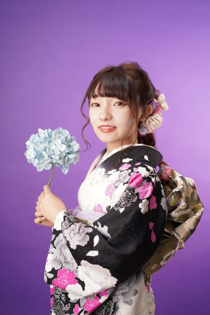 兵庫県丹波市、京都府舞鶴市に立地する「きもののほそみ」直営の写真館スタジオで、成人式の前撮り撮影をされたお客様のお写真です。 二十歳の晴れやかな喜びがあふれます。