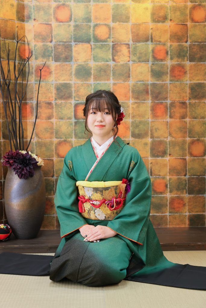 兵庫県丹波市、京都府舞鶴市に立地する「きもののほそみ」直営の写真館スタジオで、成人式の前撮り撮影をされたお客様のお写真です。 二十歳の晴れやかな喜びがあふれます。