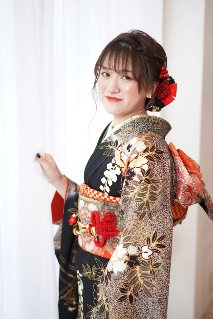 兵庫県丹波市、京都府舞鶴市に立地する「きもののほそみ」直営の写真館スタジオで、成人式の前撮り撮影をされたお客様のお写真です。 二十歳の晴れやかな喜びがあふれます。