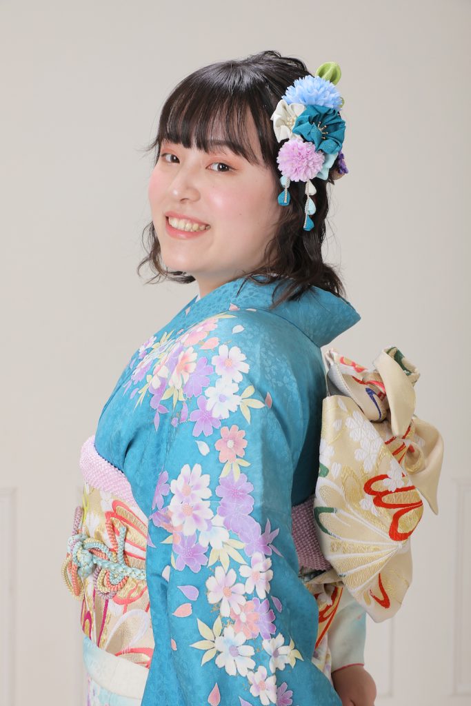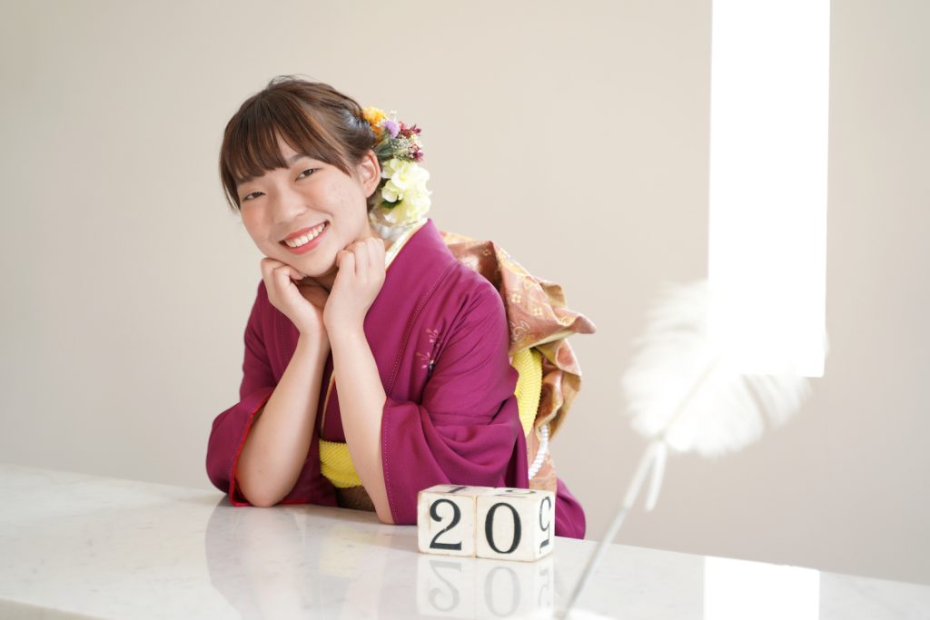 兵庫県丹波市、京都府舞鶴市に立地する「きもののほそみ」直営の写真館スタジオで、成人式の前撮り撮影をされたお客様のお写真です。 二十歳の晴れやかな喜びがあふれます。