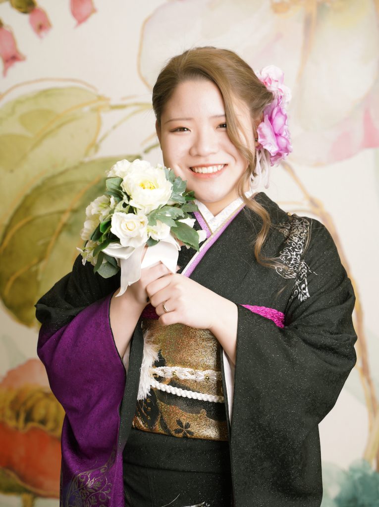 兵庫県丹波市、京都府舞鶴市に立地する「きもののほそみ」直営の写真館スタジオで、成人式の前撮り撮影をされたお客様のお写真です。 二十歳の晴れやかな喜びがあふれます。