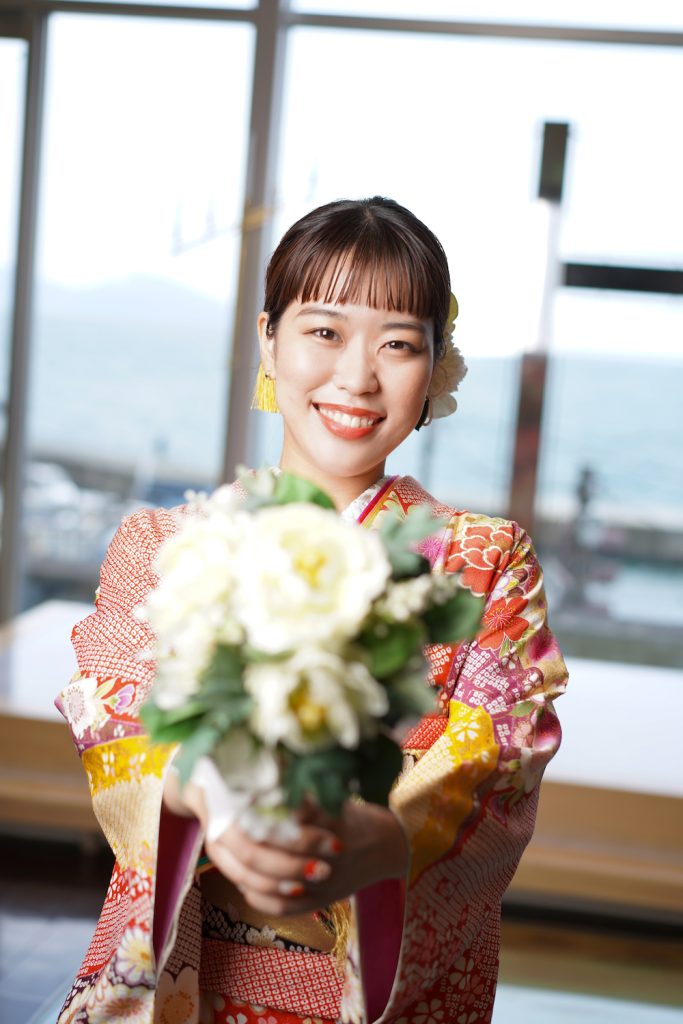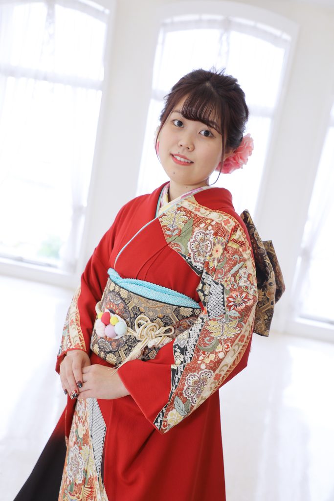 兵庫県丹波市、京都府舞鶴市に立地する「きもののほそみ」直営の写真館スタジオで、成人式の前撮り撮影をされたお客様のお写真です。 二十歳の晴れやかな喜びがあふれます。