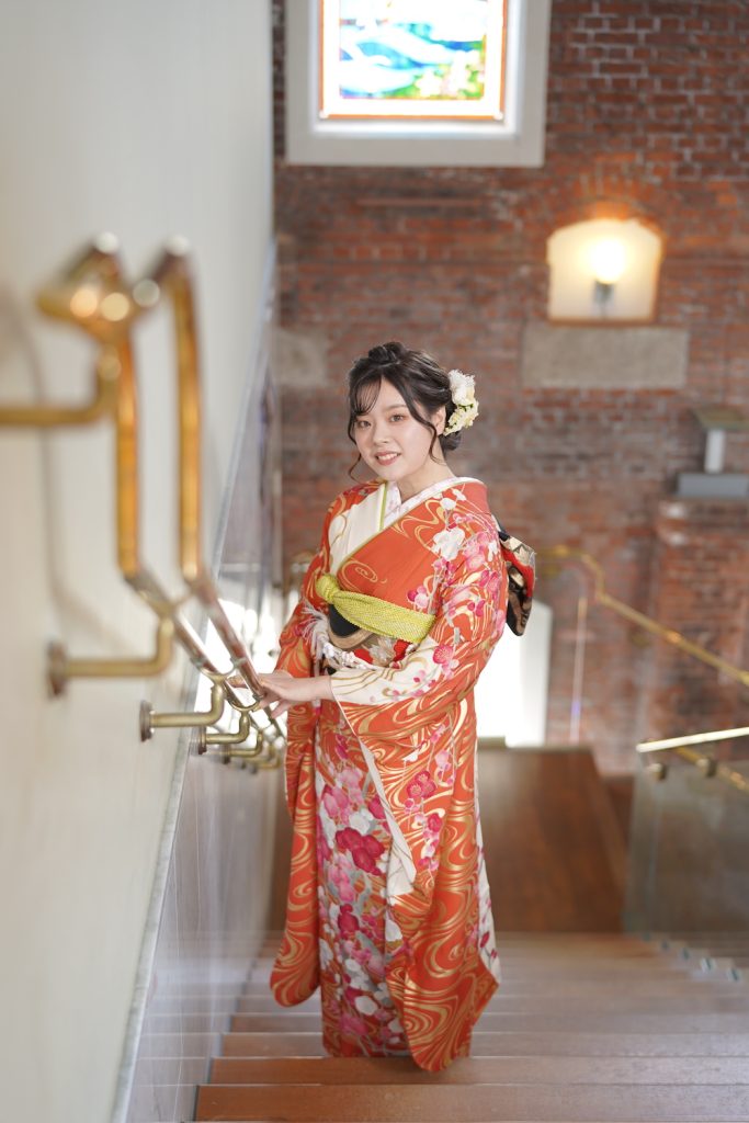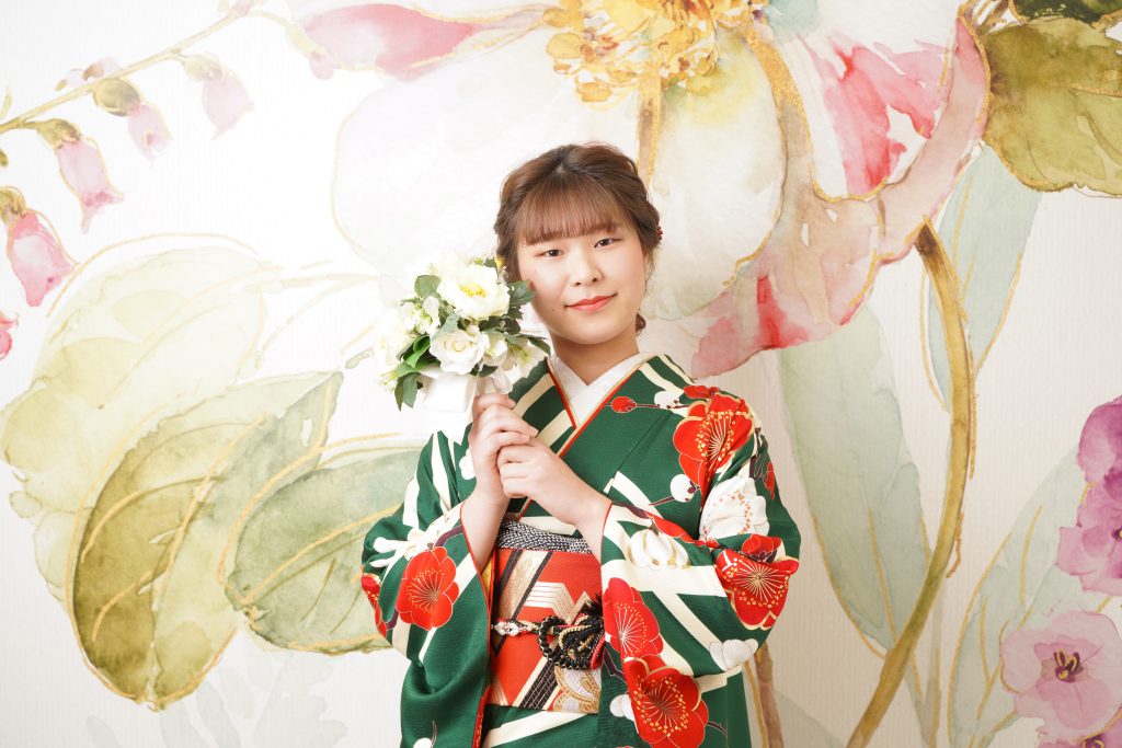 兵庫県丹波市、京都府舞鶴市に立地する「きもののほそみ」直営の写真館スタジオで、成人式の前撮り撮影をされたお客様のお写真です。 二十歳の晴れやかな喜びがあふれます。