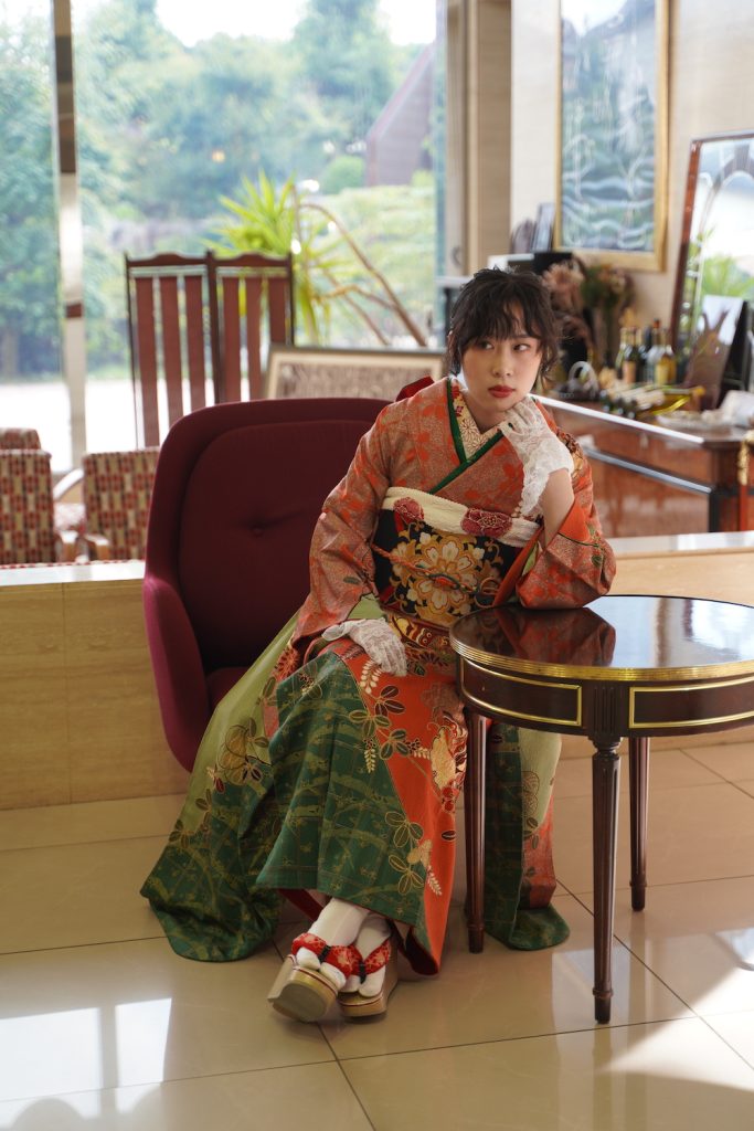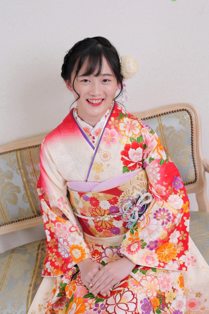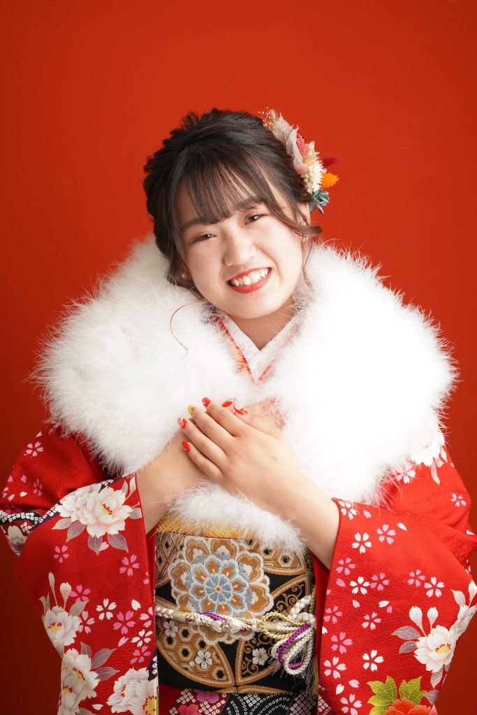 兵庫県丹波市、京都府舞鶴市に立地する「きもののほそみ」直営の写真館スタジオで、成人式の前撮り撮影をされたお客様のお写真です。 二十歳の晴れやかな喜びがあふれます。