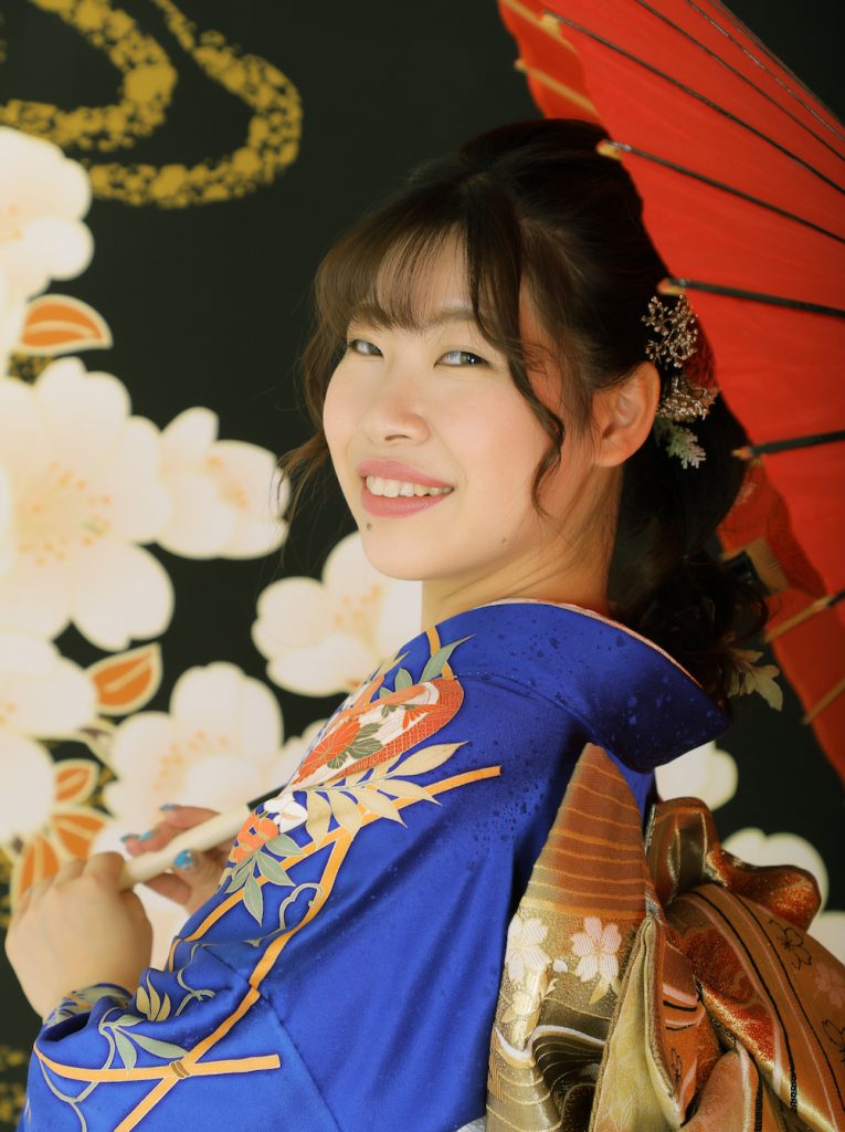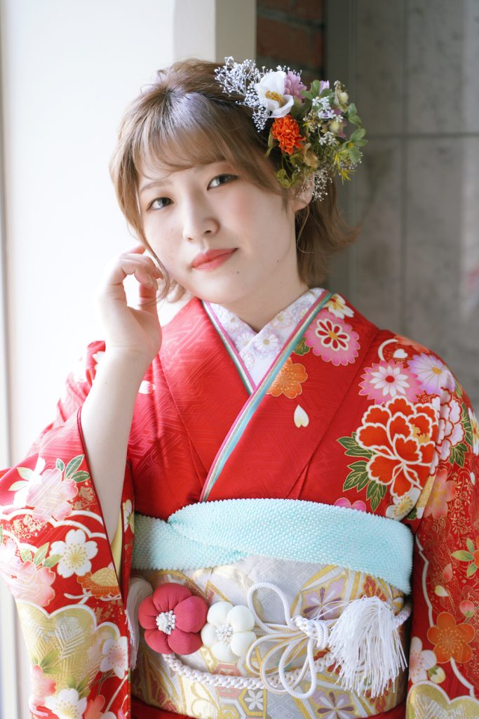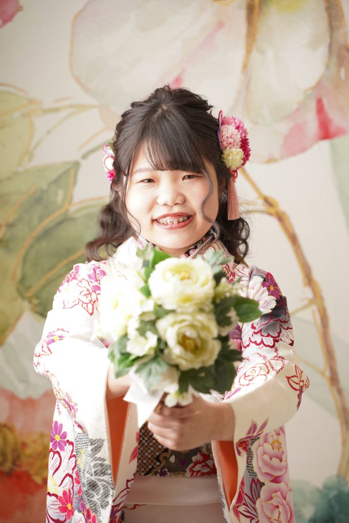 兵庫県丹波市、京都府舞鶴市に立地する「きもののほそみ」直営の写真館スタジオで、成人式の前撮り撮影をされたお客様のお写真です。 二十歳の晴れやかな喜びがあふれます。