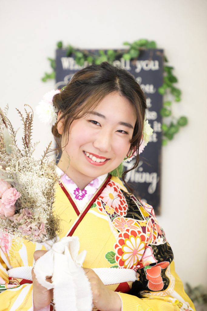 兵庫県丹波市、京都府舞鶴市に立地する「きもののほそみ」直営の写真館スタジオで、成人式の前撮り撮影をされたお客様のお写真です。 二十歳の晴れやかな喜びがあふれます。