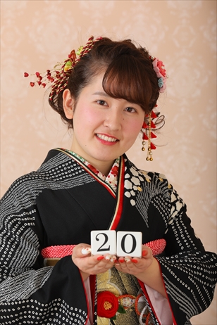 兵庫県丹波市、京都府舞鶴市に立地する「きもののほそみ」直営の写真館スタジオで、成人式の前撮り撮影をされたお客様のお写真です。 二十歳の晴れやかな喜びがあふれます。