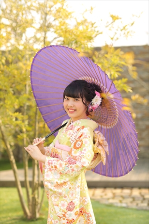 兵庫県丹波市、京都府舞鶴市に立地する「きもののほそみ」直営の写真館スタジオで、成人式の前撮り撮影をされたお客様のお写真です。 二十歳の晴れやかな喜びがあふれます。