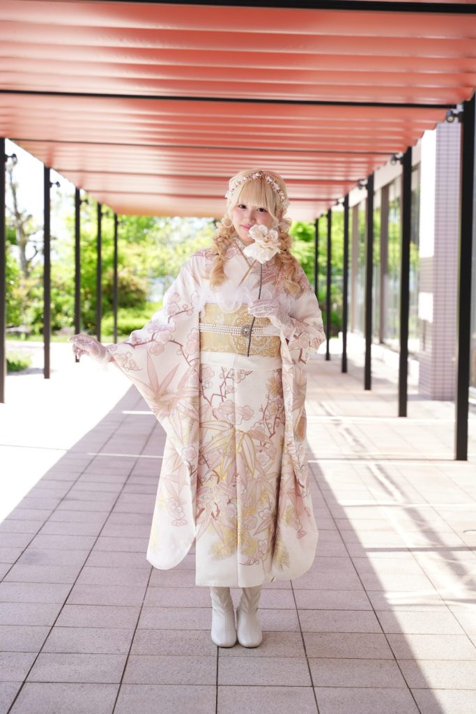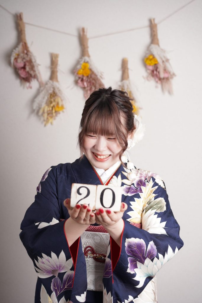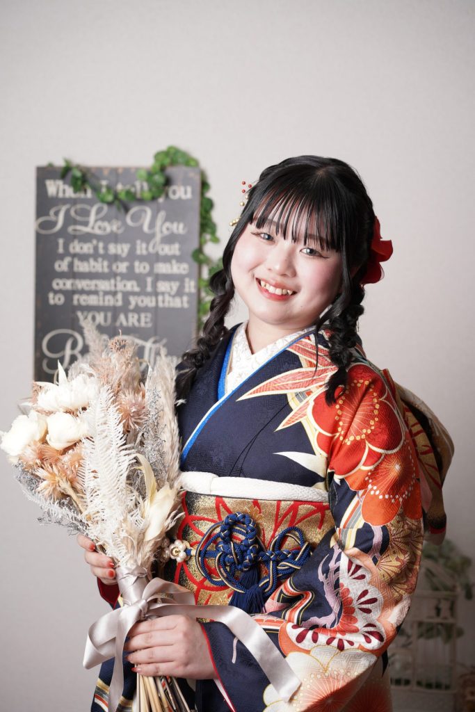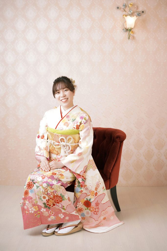 兵庫県丹波市、京都府舞鶴市に立地する「きもののほそみ」直営の写真館スタジオで、成人式の前撮り撮影をされたお客様のお写真です。 二十歳の晴れやかな喜びがあふれます。