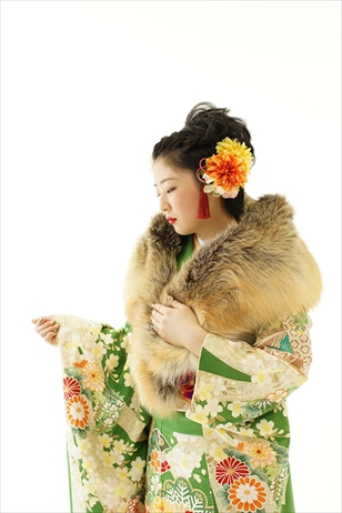 兵庫県丹波市、京都府舞鶴市に立地する「きもののほそみ」直営の写真館スタジオで、成人式の前撮り撮影をされたお客様のお写真です。 二十歳の晴れやかな喜びがあふれます。