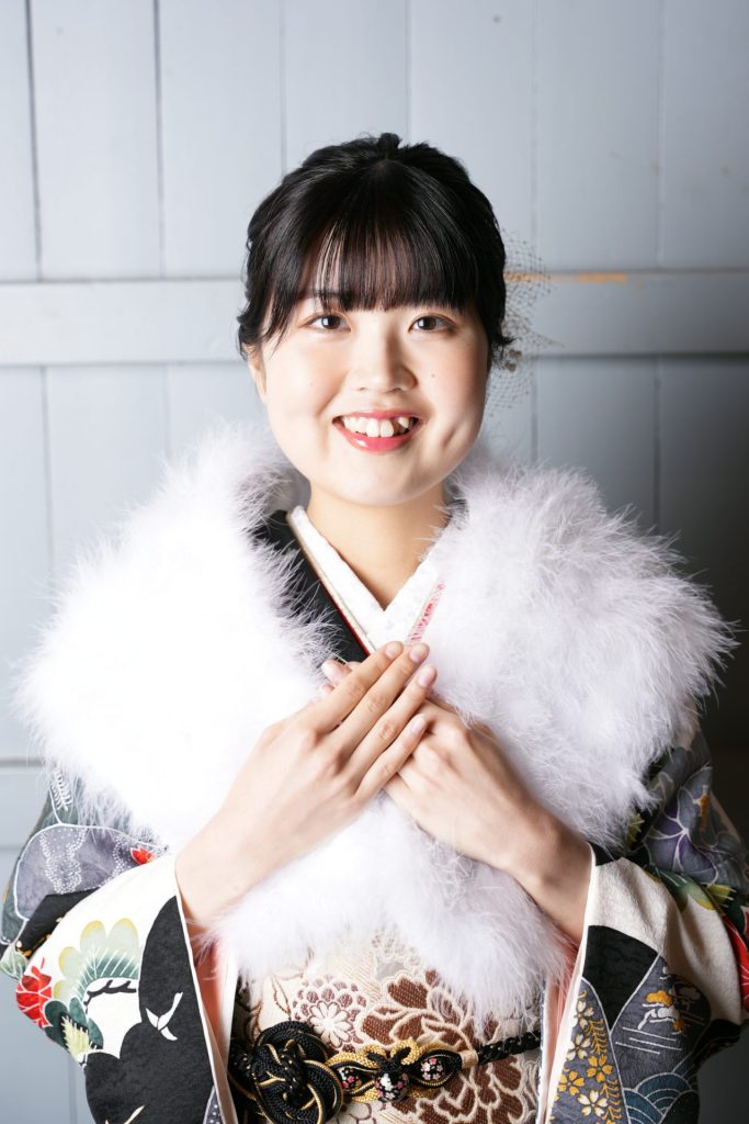 兵庫県丹波市、京都府舞鶴市に立地する「きもののほそみ」直営の写真館スタジオで、成人式の前撮り撮影をされたお客様のお写真です。 二十歳の晴れやかな喜びがあふれます。