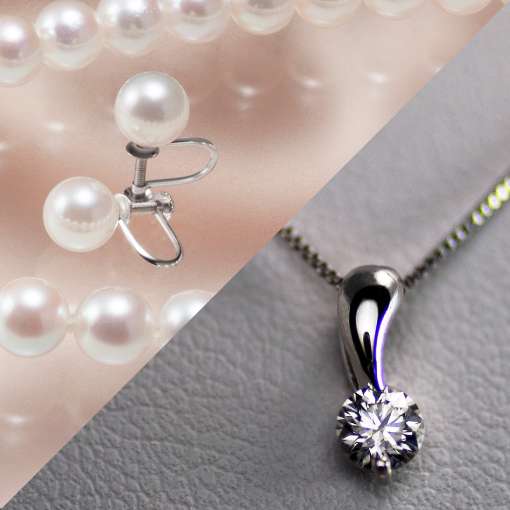 パール2粒、0.2ct 一粒ダイヤモンドをイヤリング(ピアス)やネックレスに。お嬢様へのお祝いの記念になります。※加工(有料)を承る場合に限ります。