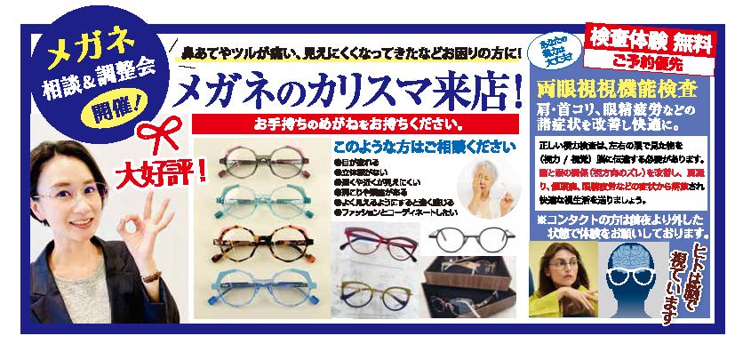 ゆめタウン店にメガネのカリスマ来場! 目の無料検査実施します!