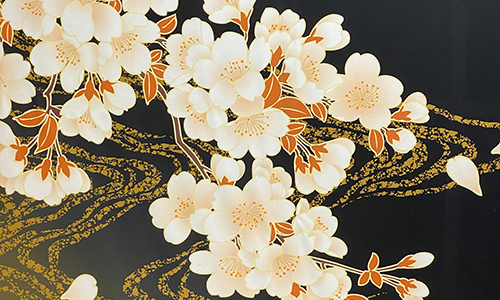 大きく桜があしらわれた黒い背景は、色のはっきりとした格好良い振袖を選んだお嬢様に人気です。